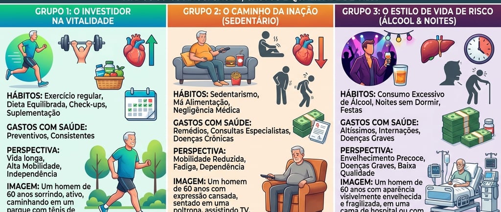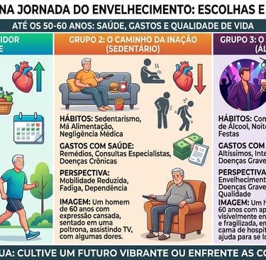 Gastos com Saúde: Os gastos deste grupo tendem a ser consistentes, focados em assinaturas de academia, serviços de profissionais de saúde (médicos, nutricionistas, educadores físicos) e suplementação de qualidade. No entanto, esses investimentos em prevenção podem reduzir significativamente os custos com tratamentos médicos intensivos e hospitalizações no futuro.